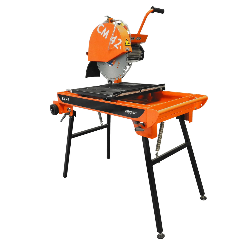 A máquina CORTADORA DE BLOCO CM42 é uma máquina de bancada indicada para cortes a úmido ou seco de materiais de construção e refratários, pisos cerâmicos, pedras ornamentais e porcelanatos. Possui pernas dobráveis com ajuste de altura, mesa deslizante antiderrapante, e rodas para transporte.